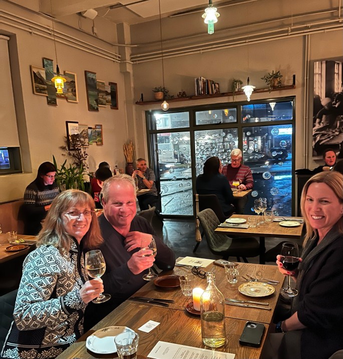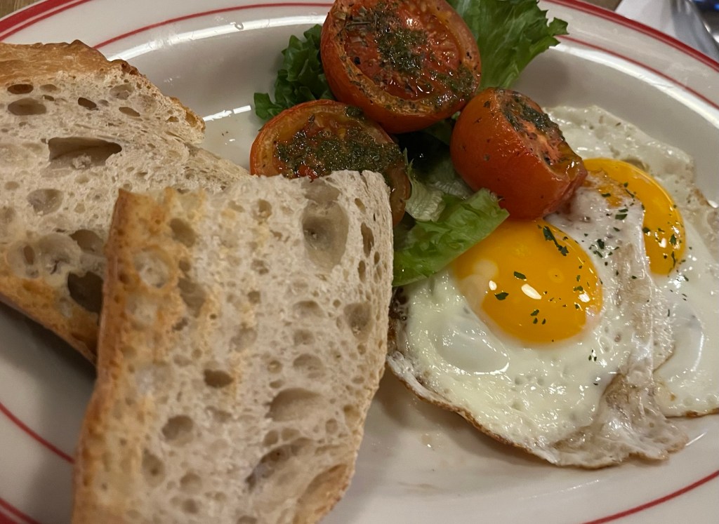 First meal of the day – breakfast. This establishment was approx. 1/2 block from our apartment. Easy walking even in windy conditions.