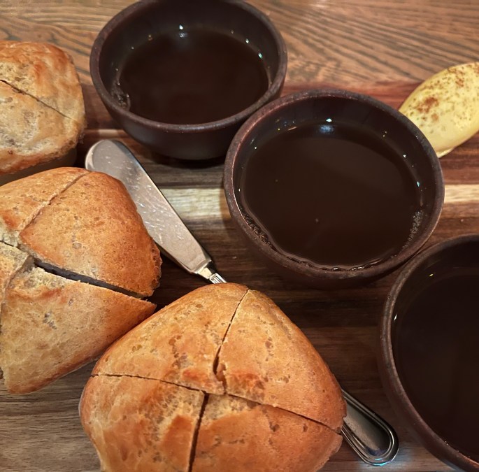 Between all of us, every meal someone ordered soup. Soup is good for the soul and for the body – another way to keep warm. Of course, you needed to accompany it with bread. 🙂
