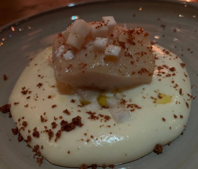 Cod head – poached then roasted before coming to the table. Yes, I tried some – but I was getting full. The other two, cleaned all of the meat from it. The waitress commented they truly knew how to pick every last morsel from the bones.
