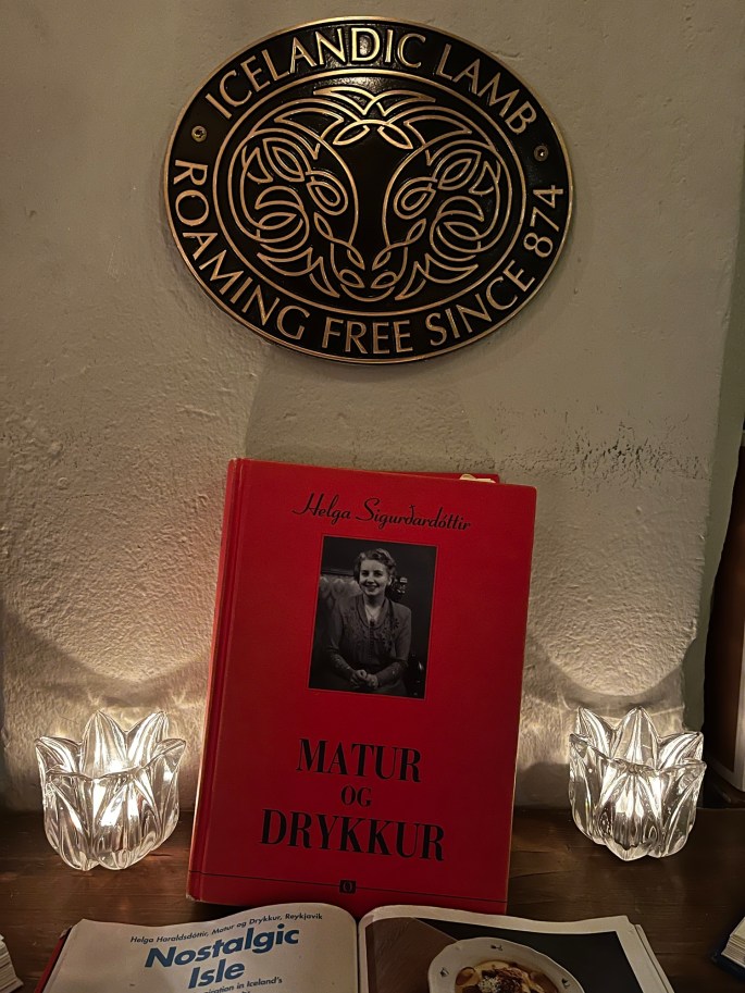Upon entering the dining area, this area is set up, kind of like a shrine. Why? The red cookbook inspired the restaurant and its offerings. It was the first ever published cookbook printed in Icelandic, 1922. It means Food and Drink – hence the name of the restaurant.