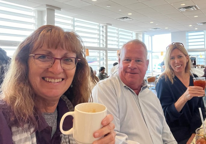 Next stop……..The Club, MCO, for breakfast and drinks – coffee for me, not for the other two.