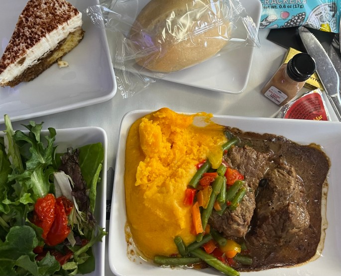 Airline food is not usually photo worthy………but having real plates and silverware bumped it up a notch or two – just saying.