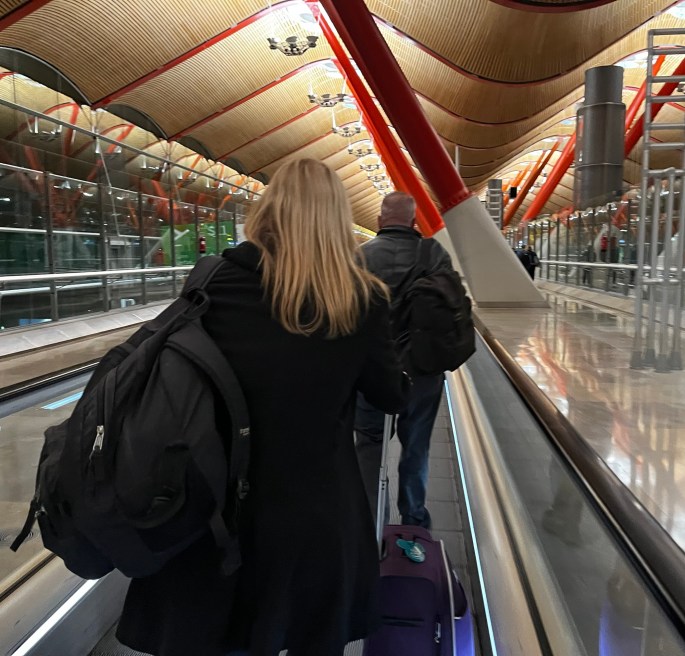 As with most of our flights, landing in Europe occurs very, very, very early on their time. Arrival was scheduled for 5:30am. Let’s just say going through the Madrid Airport was a breeze. We kept walking, walking and more walking before we got to Customs – which was empty. Fastest we have ever gotten through!