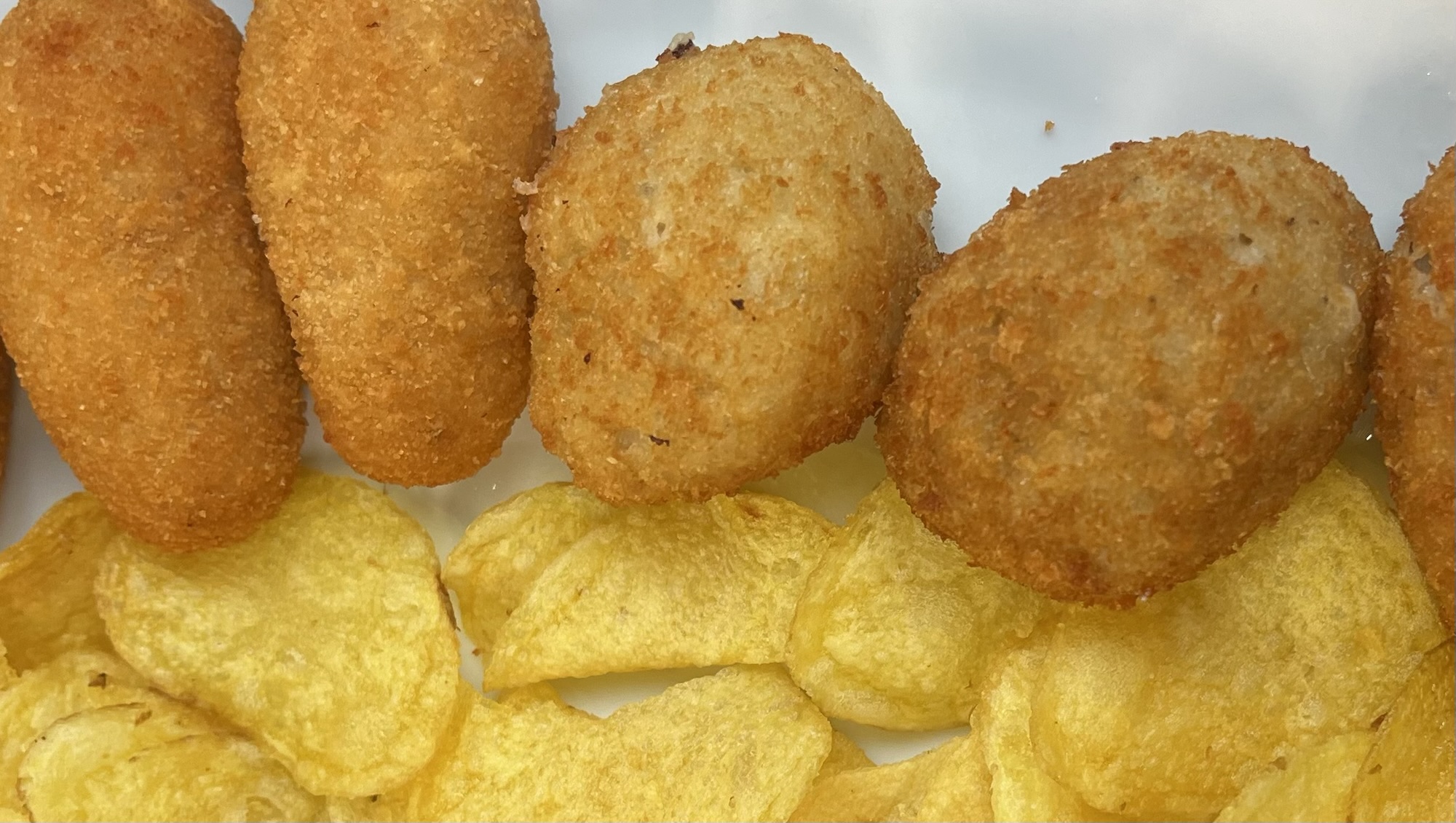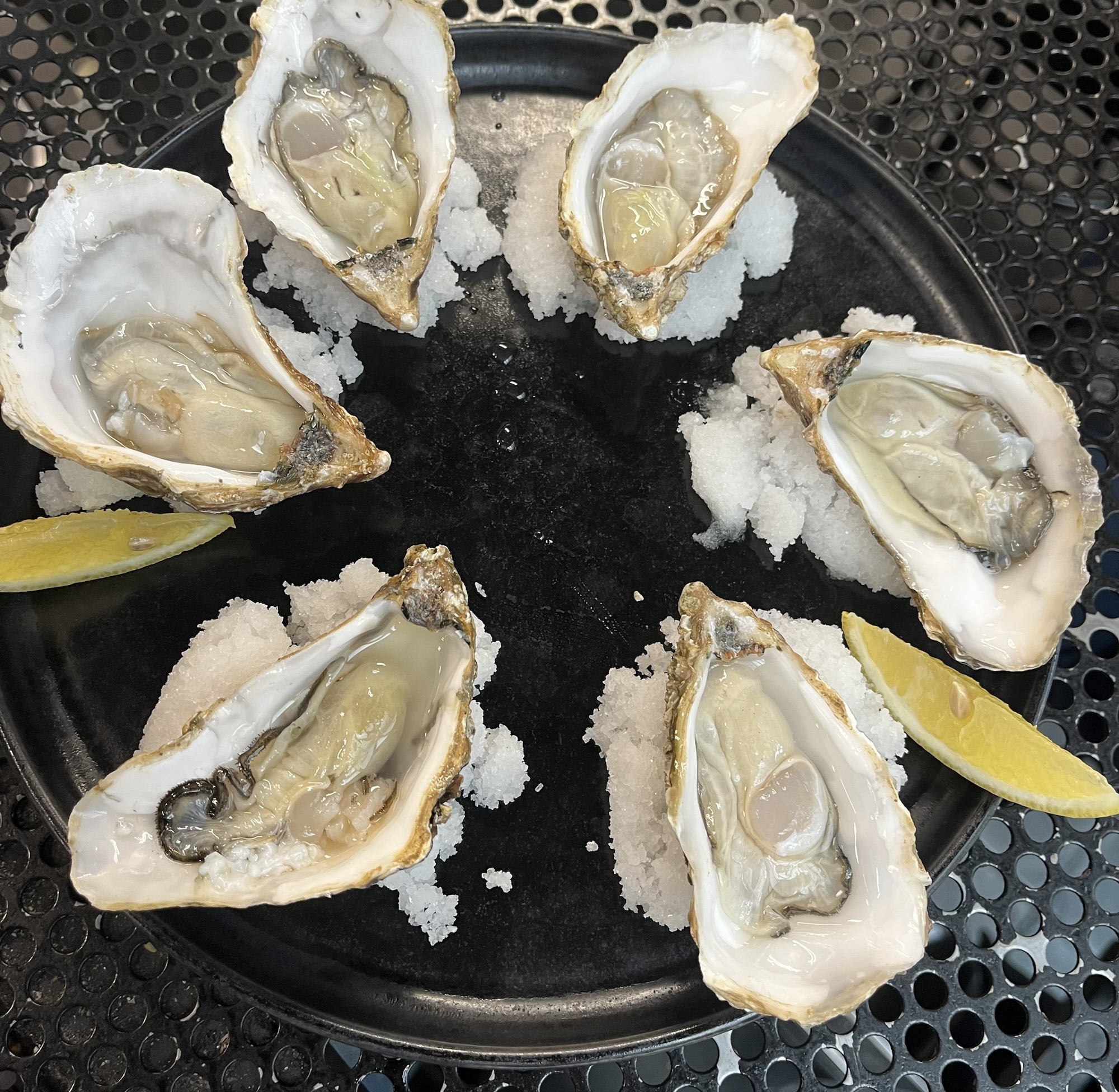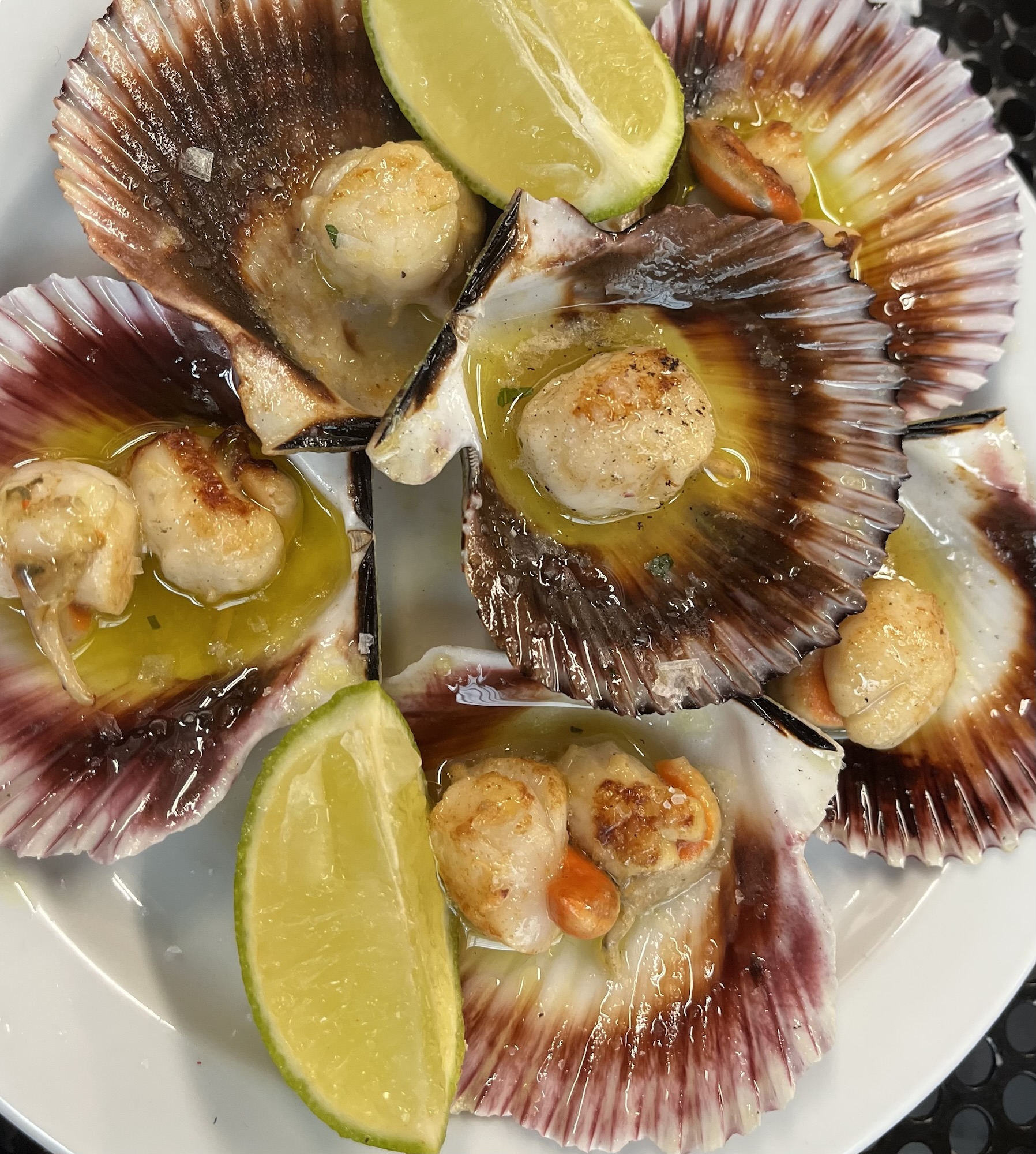 Eric ordered a few different things to share: scallops, cheese croquettes and oysters.