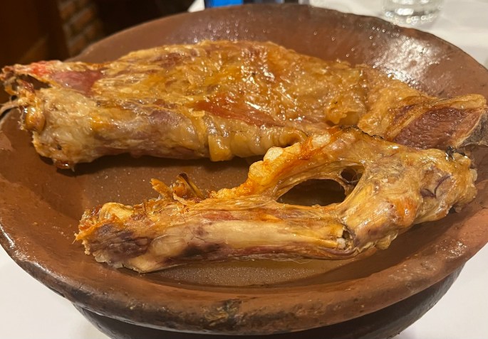 Then the reason Eric made these reservations………………….Quarter lamb roasted in a wood oven – shared by him and Adrienne.