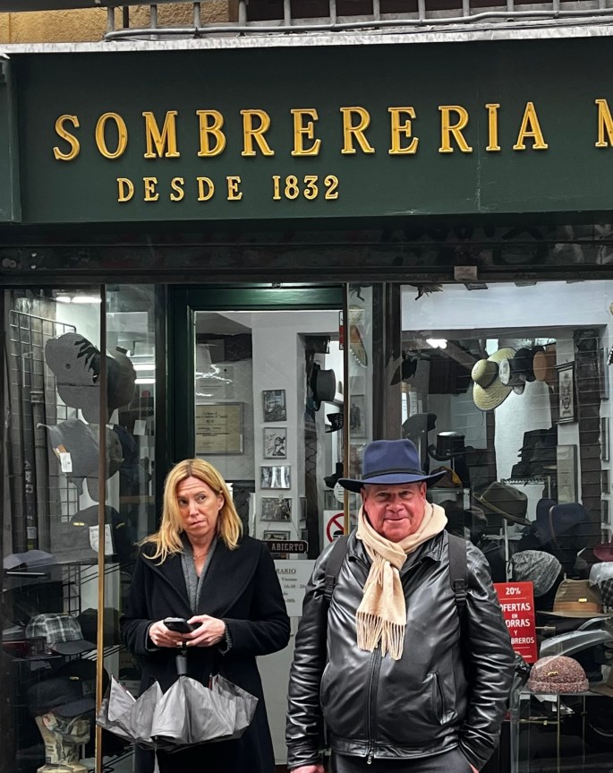 You may have noticed Eric was sporting a new look. Eric felt a new wool hat was needed. Once he saw the bronze plaque indicating a 100+ years existence in front of this store – he was sold, a blue wool hat was purchased.