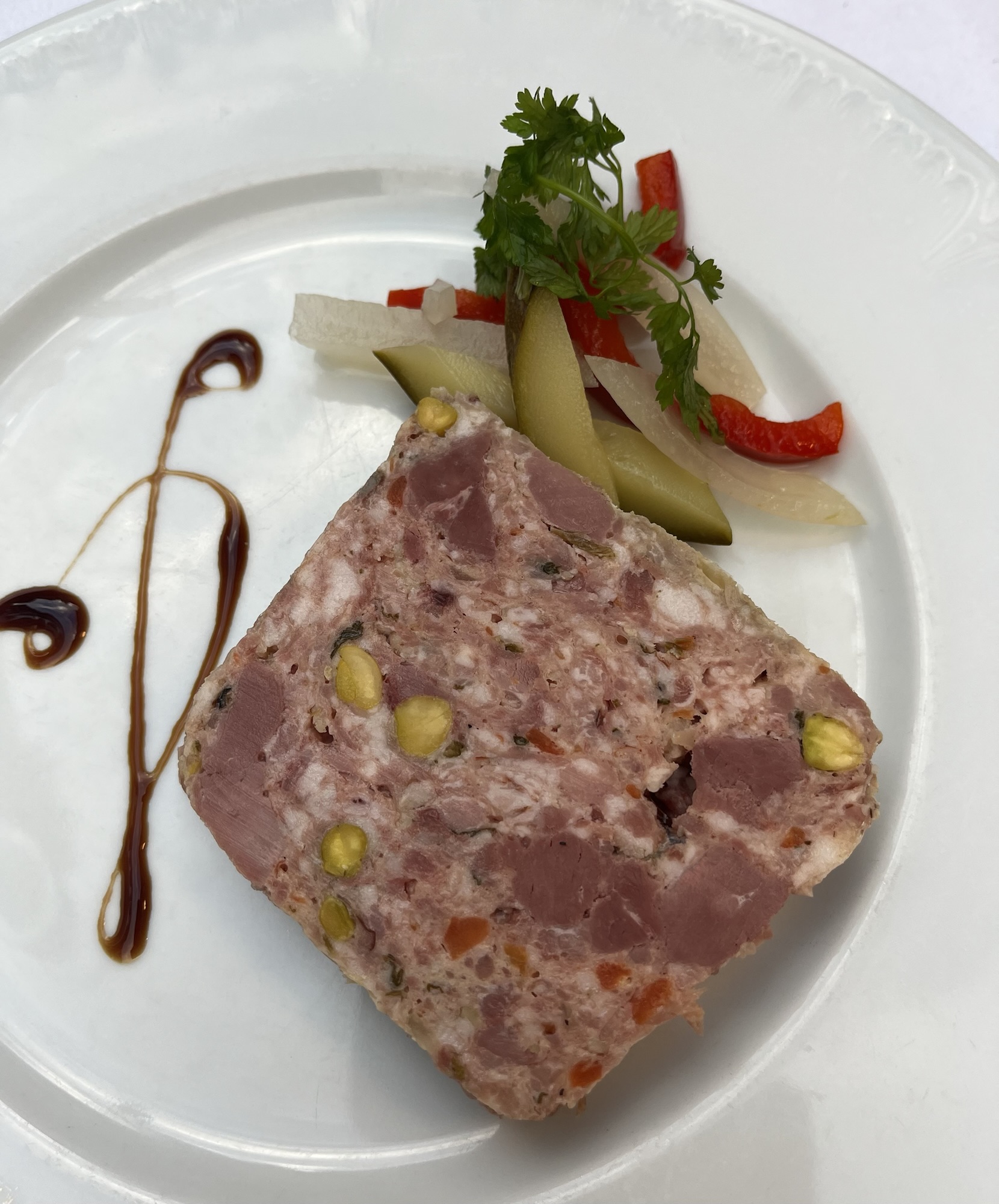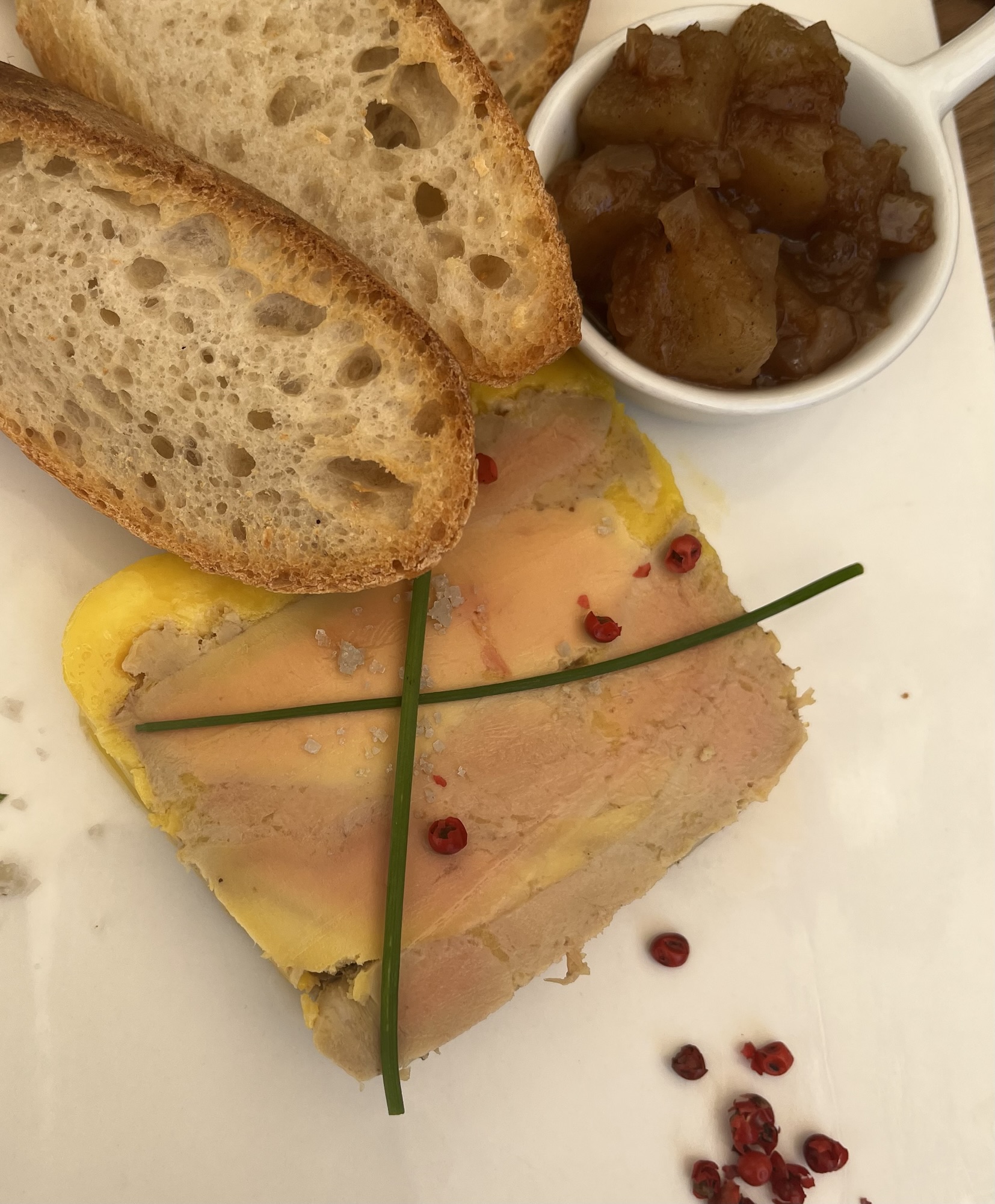 The duck terrine with hazelnuts and snails in Alsatian style started our dining. Seems like every meal has foie gras or a terrine – what living.