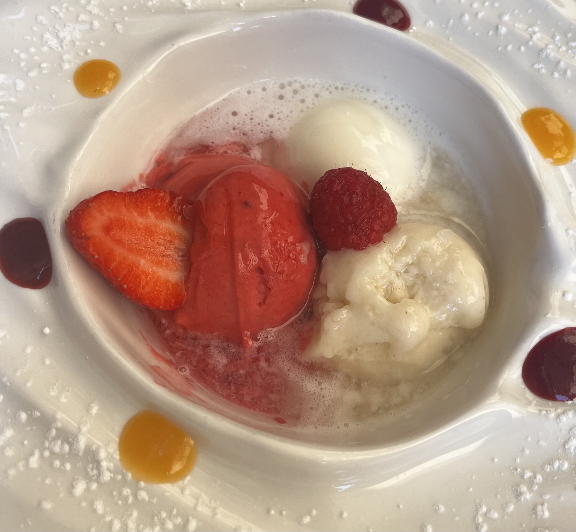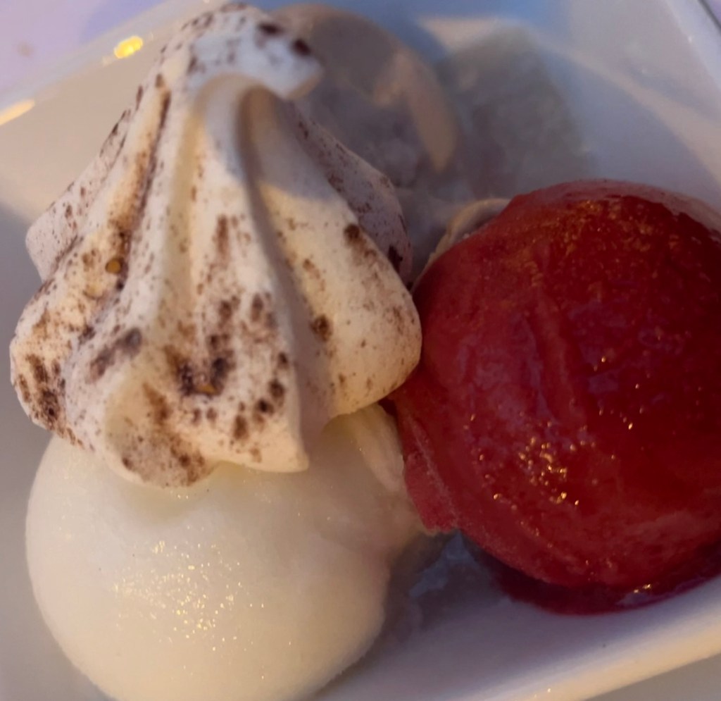 Desserts were no less fabulous: chocolate & banana tart (left) ice cream & sorbet (right).