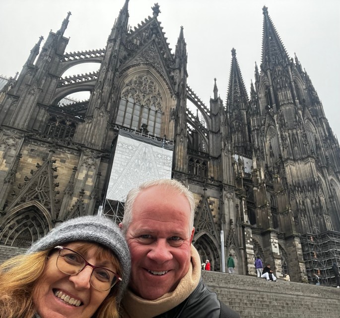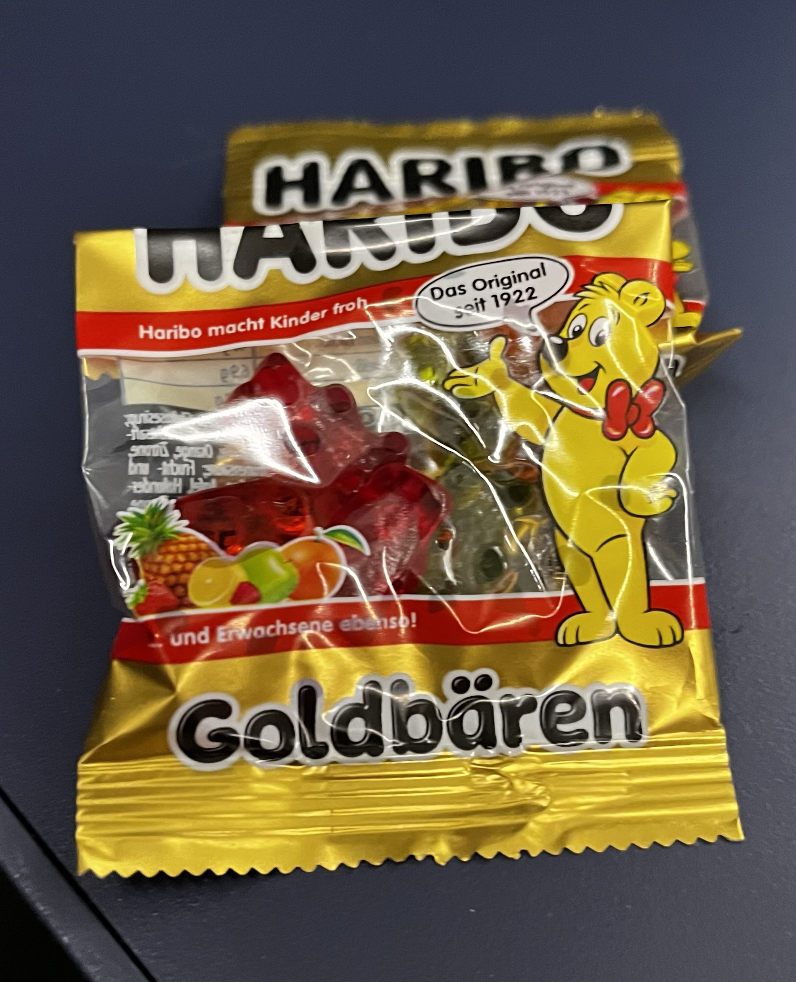 A new city! Someone at work recommended Cologne for Christmas markets and that rose to the top of our list. We’re on another train and this one handed us German gummi bears – how cool is that. A little snack for the train ride. 🙂