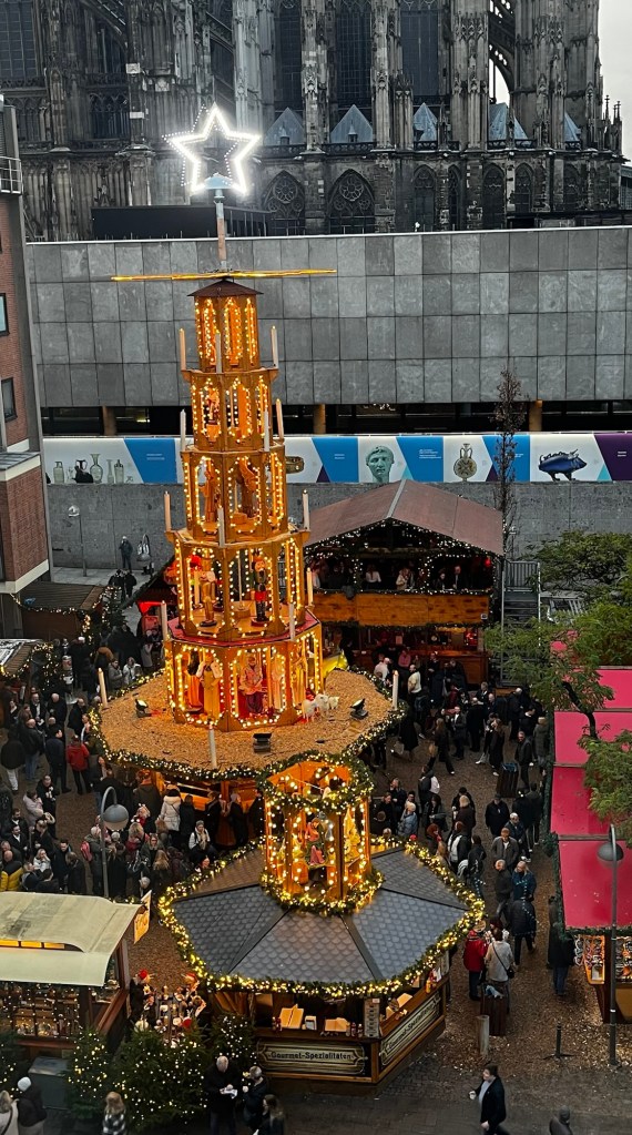 We could easily walk to our hotel from the church – it’s on the other side of the building. Standard city hotel – but what a view. This is a little side Christmas market. Not even sure it has a name. On the other side of a building, is the Cathedral Christmas market. Maybe they outgrew their original space and gradually moved down to this open spot?
