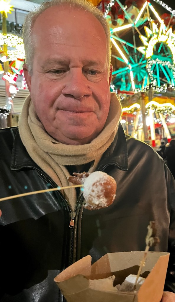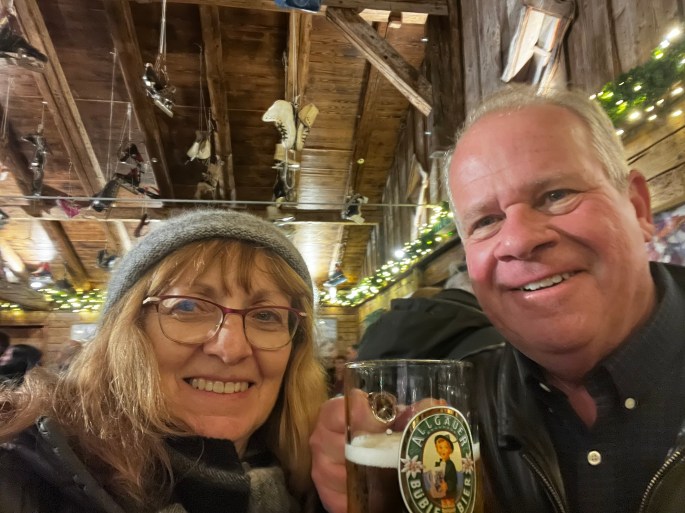 That ‘small’ market seen outside our window when we first arrived………..we stopped in to check it out later that evening and it was all about food and drink . Yep, we added another drinking vessel to our collection. Our first Christmas market mug.