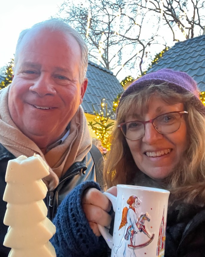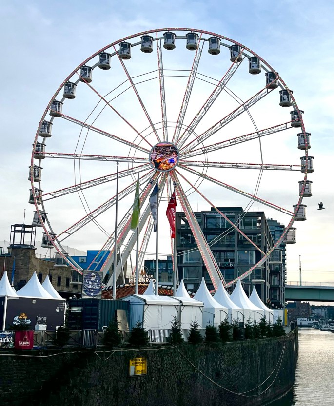 Next was a hunt for the Maritime Christmas market, down near the Rhine River. Easy to find once we realized the Ferris wheel was part of the market.