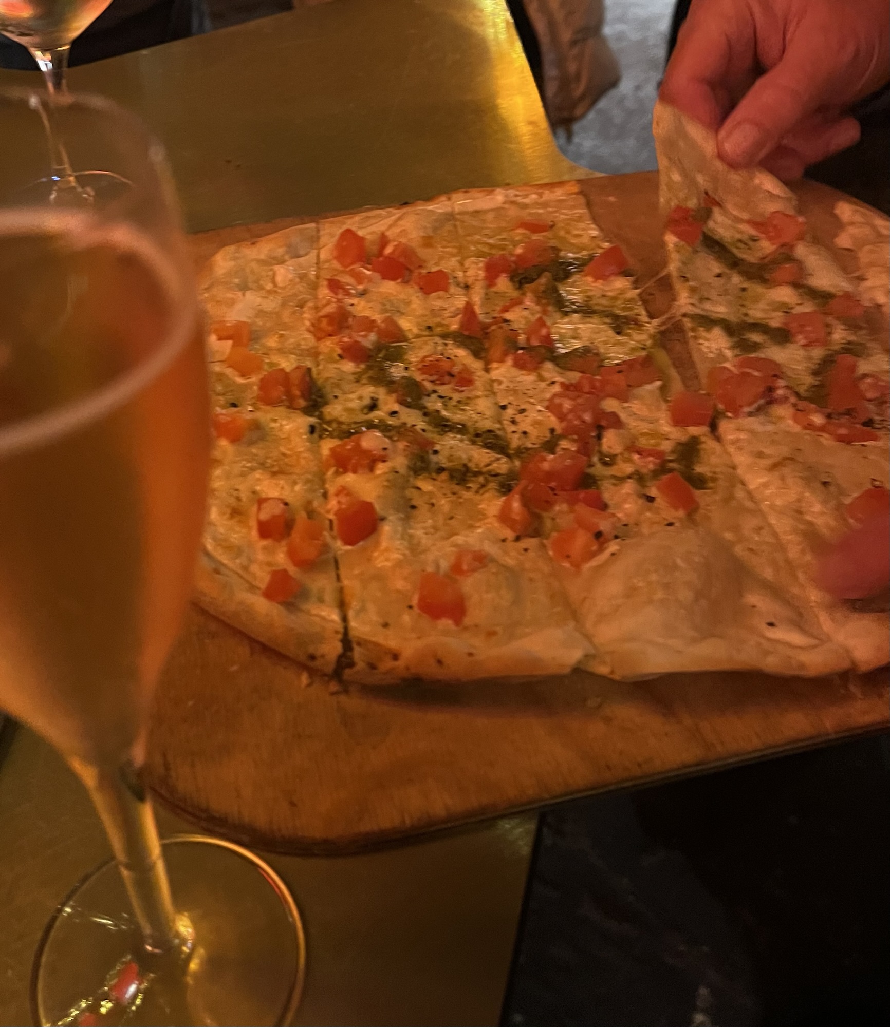 Eric was looking for wine and I found a ‘vegetarian’ tarte flambe’ – totally enjoyed every last bite.