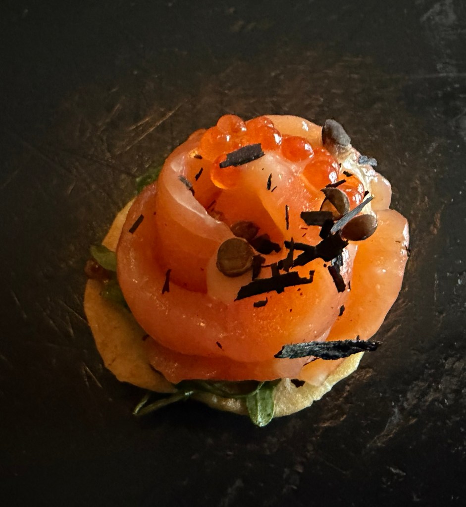 We were served two tastes from their menu: slow-cooked lamb & flatbread with a carrot puree, red onions & horseradish and arctic char blini on a chickpea flatbread, roe, horseradish and popping lentils. I liked the lamb tasting the best. Iceland was the reason I started eating lamb. Only problem……………I only like Icelandic lamb, and we can’t find it in the states, yes we have tried.