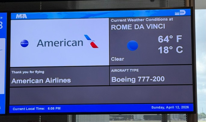 It was time to head back to Europe. This time with a party of three versus only two of us.  We couldn’t find a direct flight to Rome, but I wanted to avoid Atlanta.  Next option was a connection in Miami – sold.