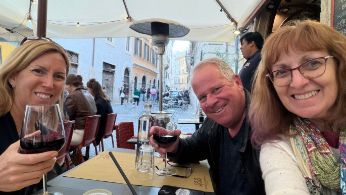 Upon landing in Rome, we were prepared to go through a new Entry/Exit System (EES) that was mandated to start 4/10/26 – shortly before our trip. Everything I had heard was be patient, the first time it will take longer and future trips would be a shorter process since everything would be on file. As we prepared to go through Passport Control, we were suddenly directed to go up a flight of stairs, get in a line for ‘non-Italians’, to go down an escalator to the original entry point! Basically, they were making us form a queue since it was a compact space and a number of flights had landed. Yikes, this is going to take us awhile. After taking the escalator down, passengers with a US or UK passport were directed to the left side of the holding area. We were waved through a number of gates and OMG within minutes we were through and at the luggage carousels. No stopping, no stamping and no more interactions.