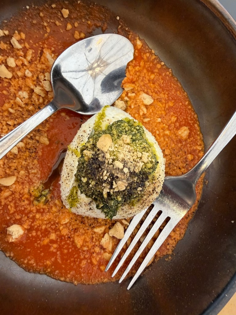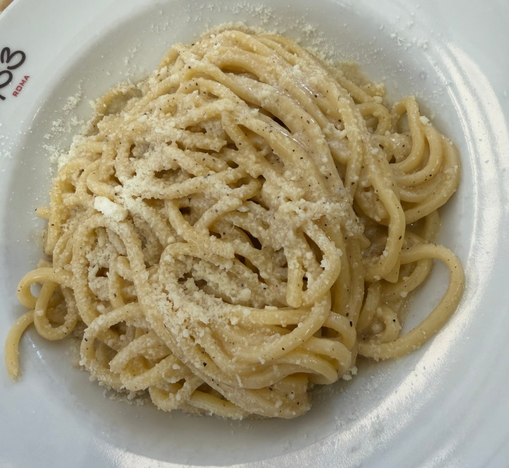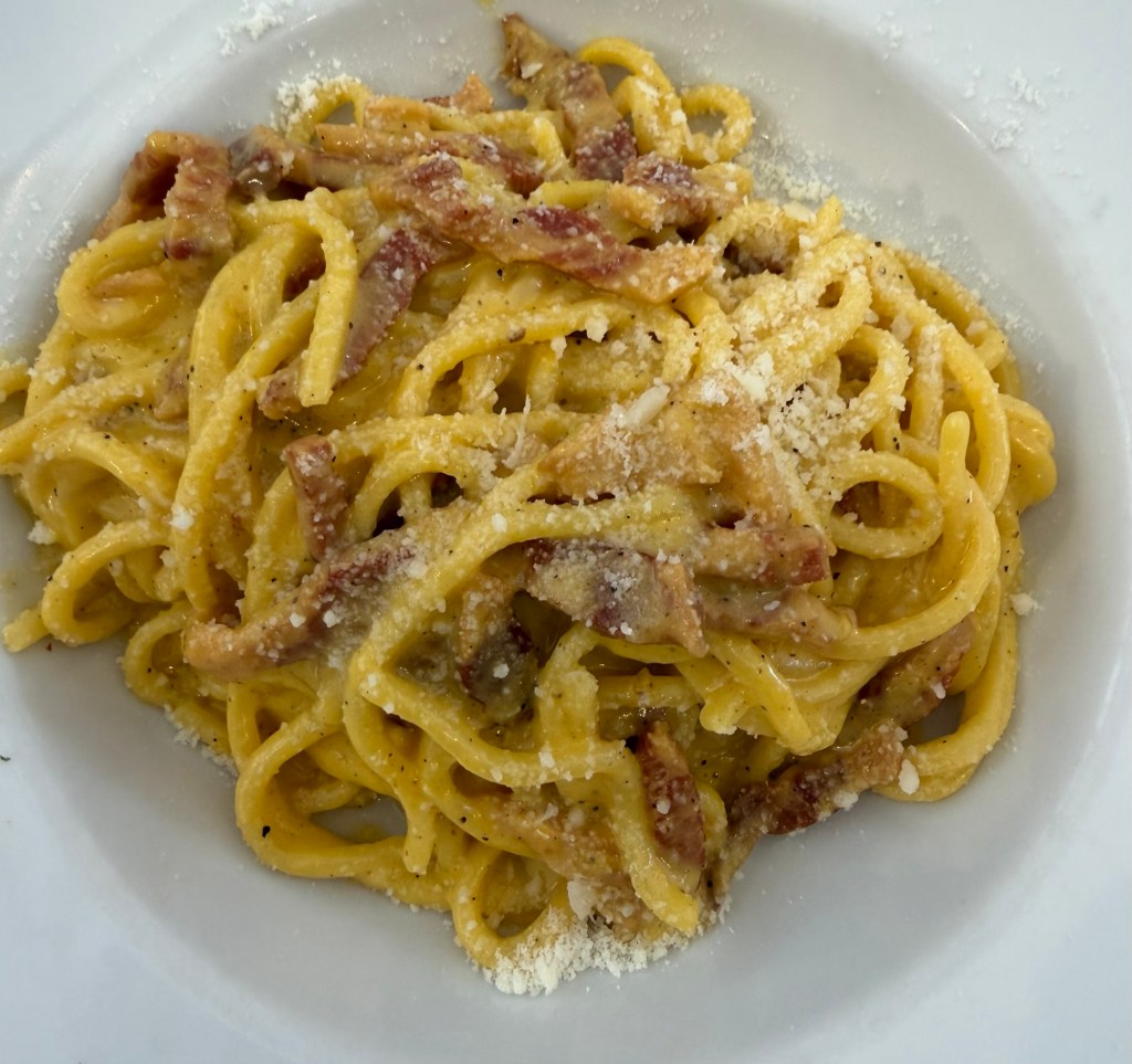 Then the meal arrived:  Buffalo mozzarella, pasta de pepe and pasta carbonara.