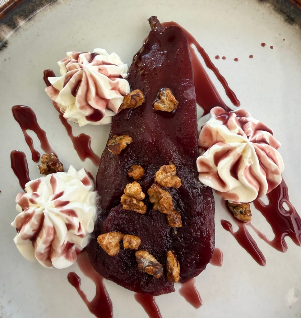 We couldn’t refuse dessert. Eric ordered the ice cream and we shared a poached pear – omg, it was the best. The pear melted in your mouth.