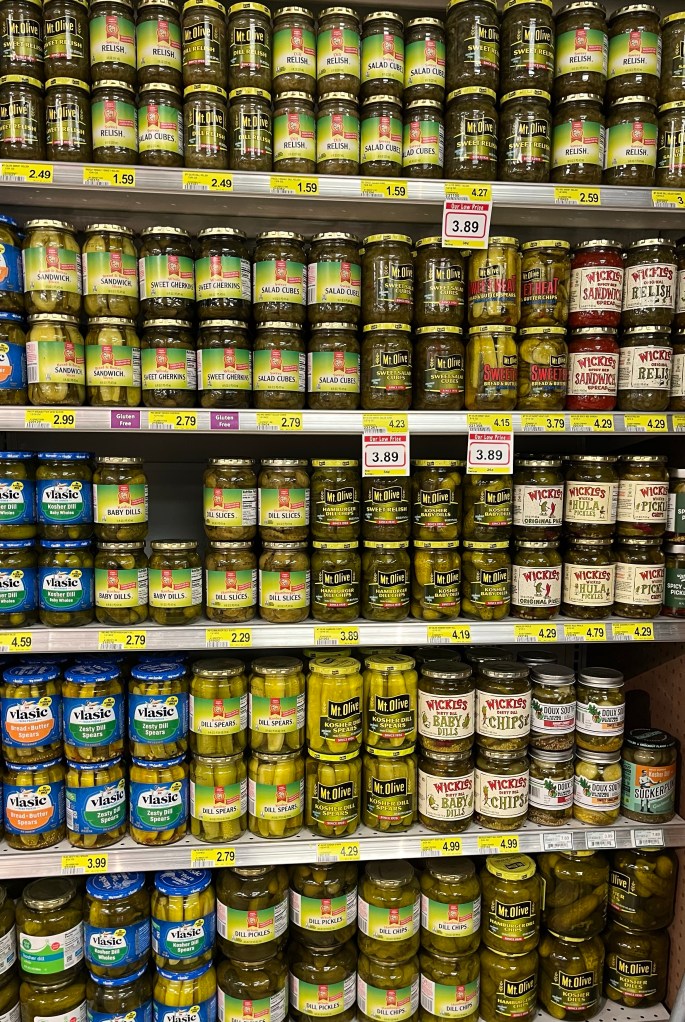 One thing I’ve always noticed was the plethora of options for many foods at this ‘small town’ grocery store. How many pickles can one community eat? I mean seriously?