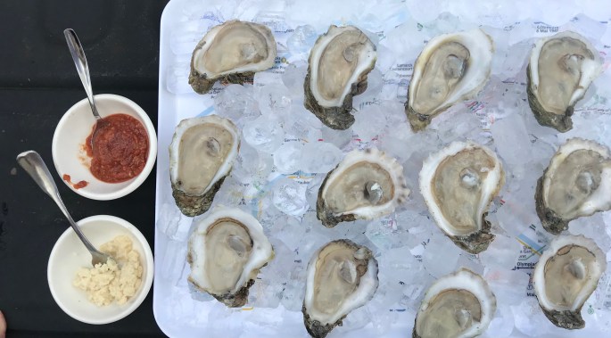 Surprise! ha, ha. We started with oysters and smoked fish dip.